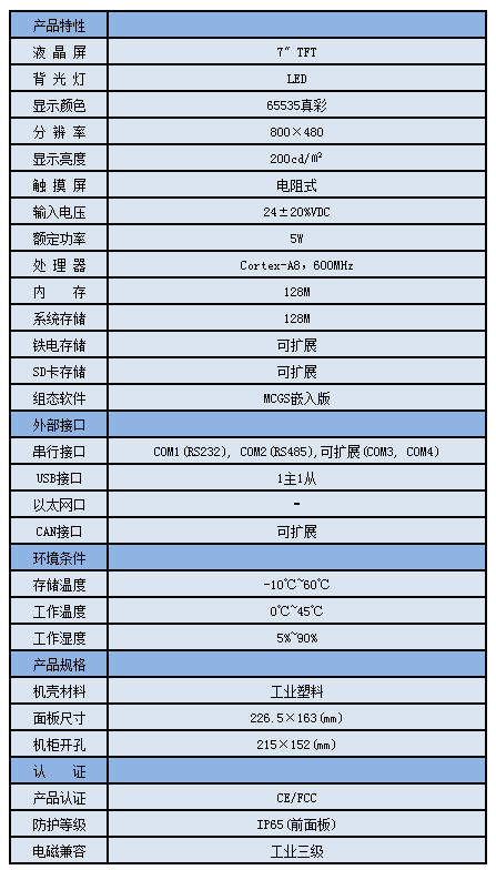 TPC7062TX,是一套以先進(jìn)的Cortex-A8 CPU為核心(主頻600MHz)的高性能嵌入式一體化觸摸屏。該產(chǎn)品設(shè)計(jì)采用了7英寸高亮度TFT液晶顯示屏(分辨率800×480),四線電阻式觸摸屏(分辨率4096×4096)。同時(shí)還預(yù)裝了MCGS嵌入式組態(tài)軟件(運(yùn)行版),具備強(qiáng)大的圖像顯示和數(shù)據(jù)處理功能。