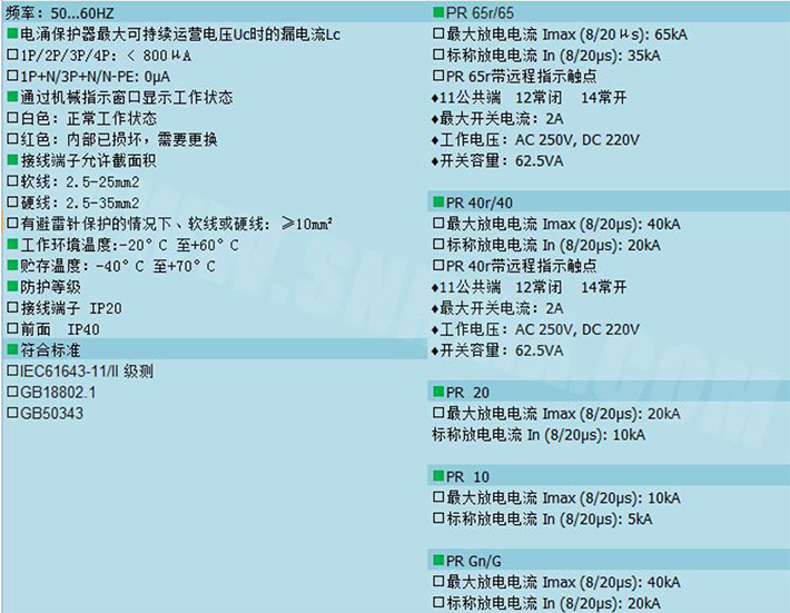 產品應用:適用于進線保護、二級保護、三級保護,可用于TN-C,TN-S,TT系統