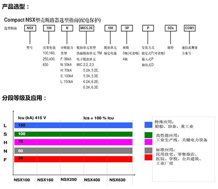 NSX系列塑料外殼式斷路器其額定絕緣電壓為950V,適用于交流50Hz或(60Hz),額定工作電壓690V及以下,額定工作電流12.5A至630A的電流中,用來(lái)分配電能,在正常條件下做不頻繁的閉合和斷開(kāi)之用,并在線路和設(shè)備過(guò)載、欠電壓時(shí)起保護(hù)作用。額定殼架等級(jí)電流在400A及以下的斷路器,也可作鼠籠型電動(dòng)機(jī)的不頻繁起動(dòng),運(yùn)轉(zhuǎn)中斷開(kāi)以及在電動(dòng)機(jī)過(guò)載,短路及欠電壓時(shí)起保護(hù)作用。
